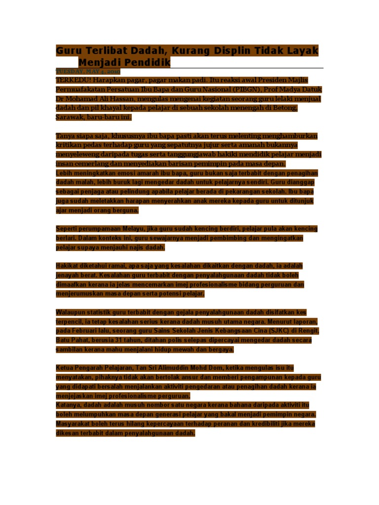 Guru Terlibat Dadah