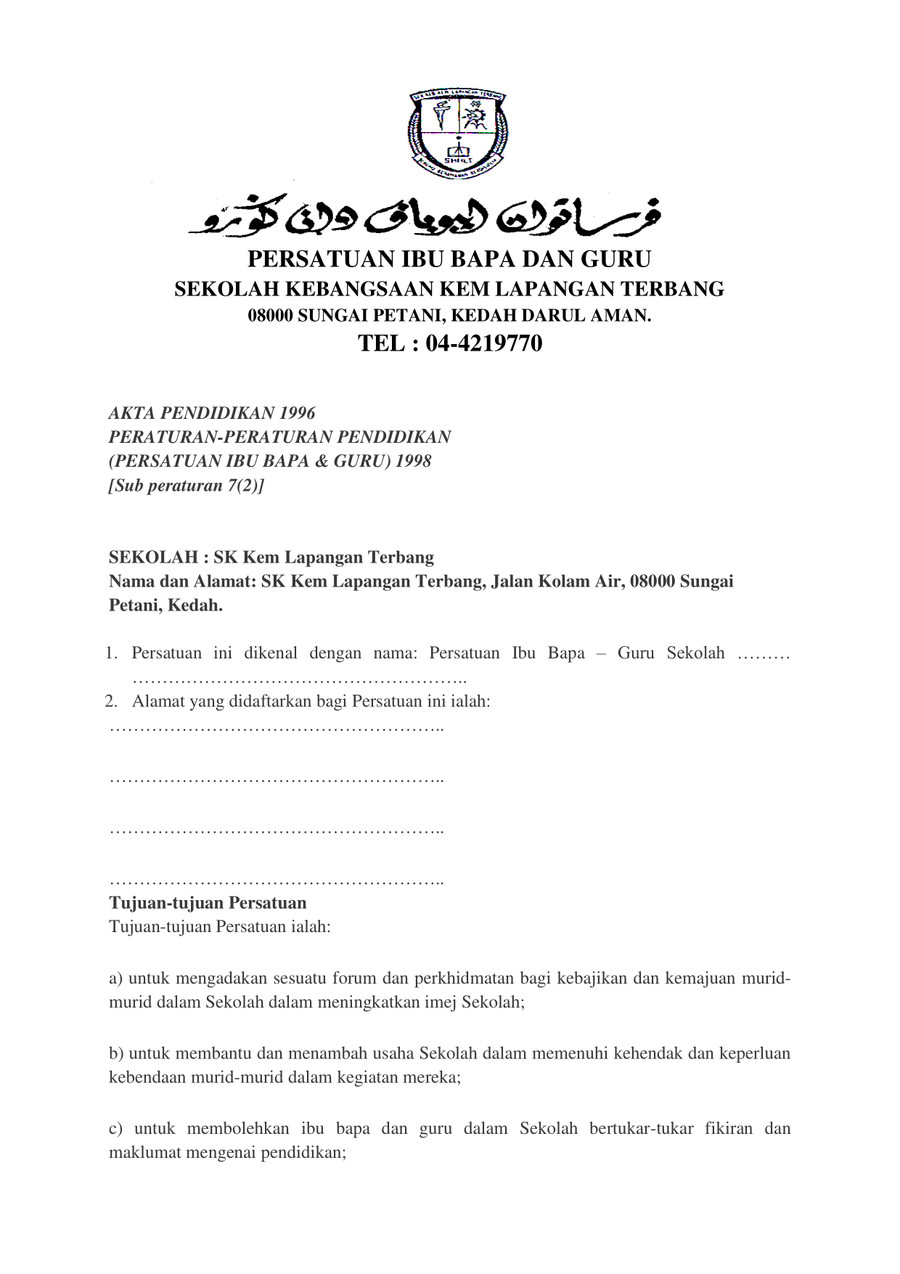 Perlembagaan Persatuan Ibu Bapa Dan Guru By Sekolah Kebangsaan Kem Lapangan Terba Flipsnack
