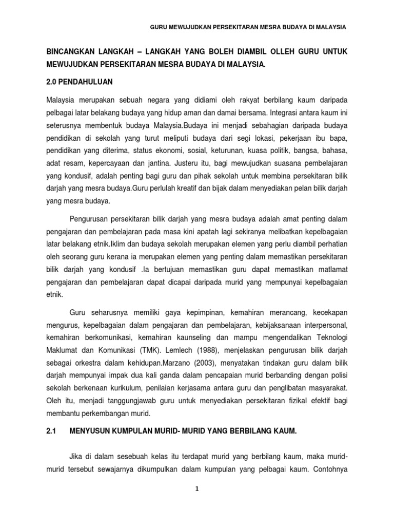 Langkah Langkah Yang Boleh Diambil Oleh Guru Untuk Mewujudkan Persekitaran Mesra Budaya Di Malaysia