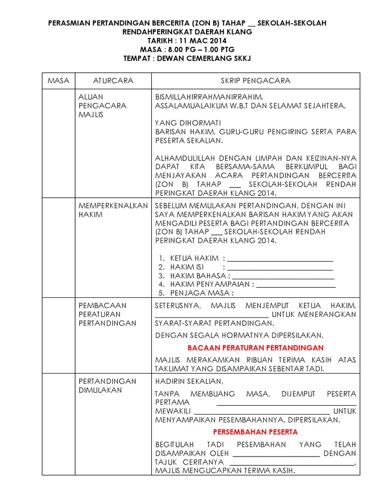 Teks Juruacara Pertandingan Bercerita Tahap Ii Docx Document