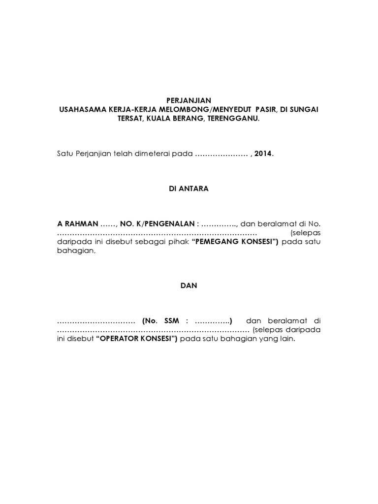 Draf Perjanjian Usahasama Melombong Pasir Sg