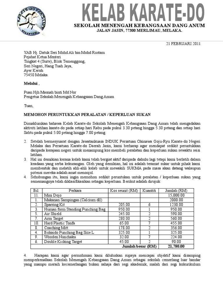 Surat Permohonan Bantuan Kewangan Pibg Surat Rasmi Q