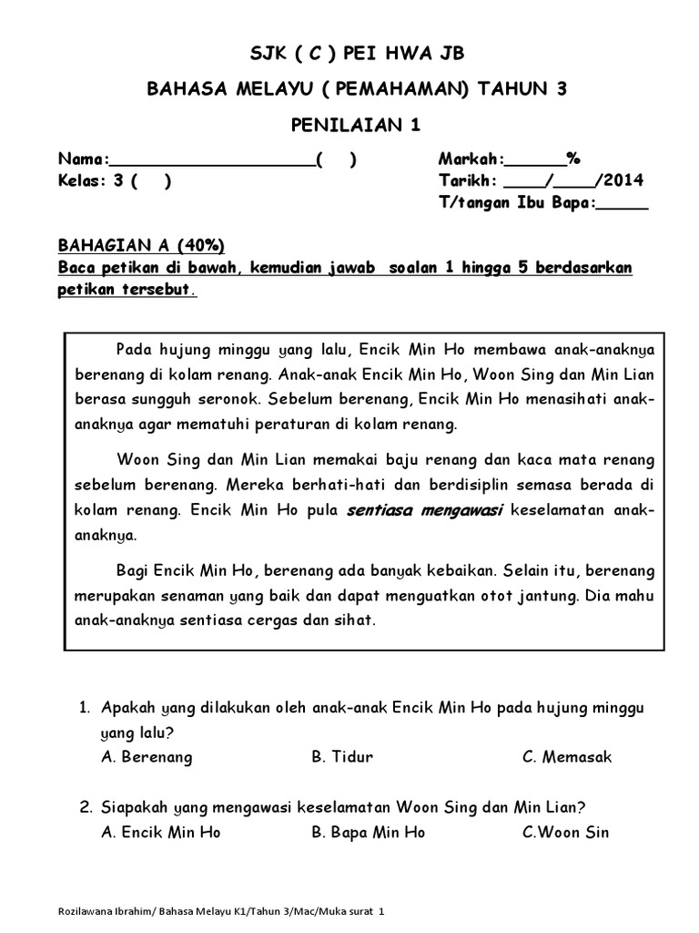 Doc Contoh Kertas Bahasa Melayu Pemahaman Tahun 3 Doc Ma Haiku Academia Edu