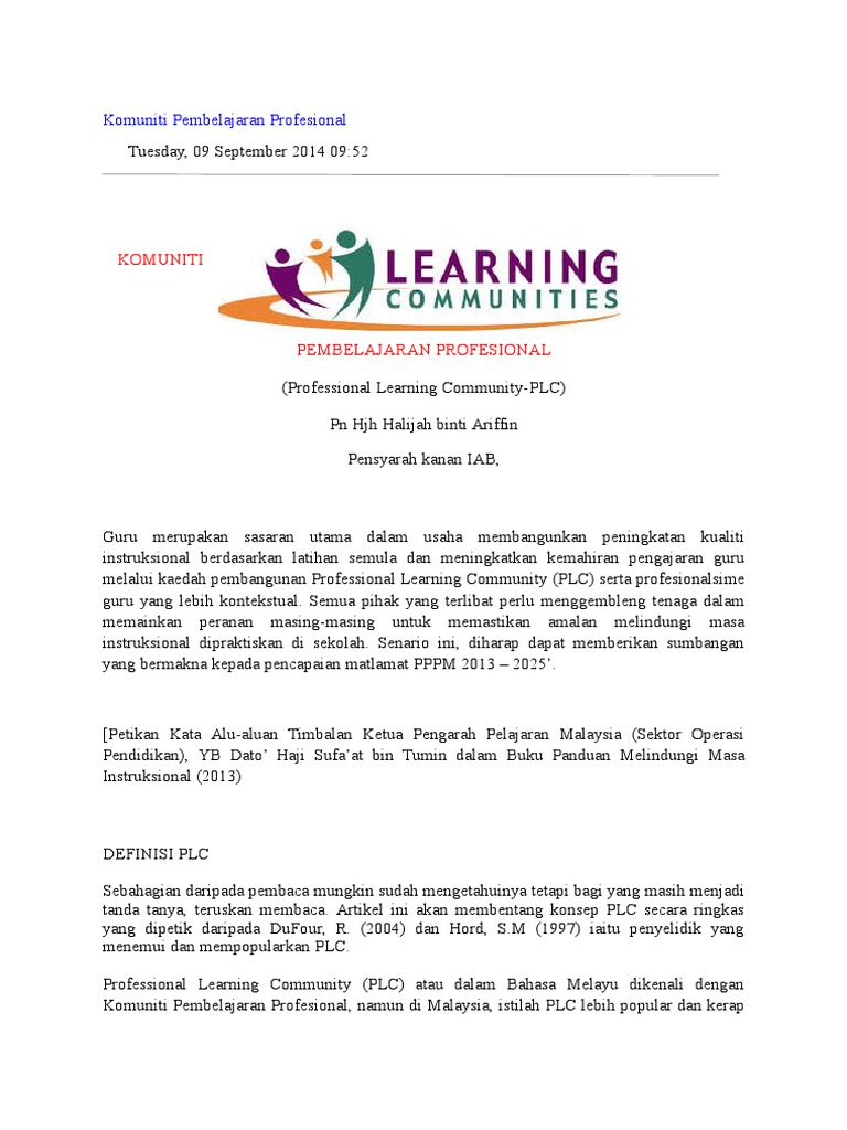 Plc Komuniti Pembelajaran Profesional