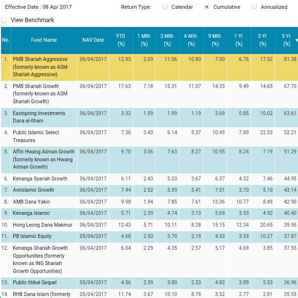 Pelaburan Unit Amanah Islam Dana Pmb Shariah Agressive Fund Memberikan Pulangan Paling Tinggi Di Antara Semua Dana Unit Amanah Yang Dibenarkan Di Bawah Skim Pelaburan Ahli Kwsp Seperti Pada 8 April 2017