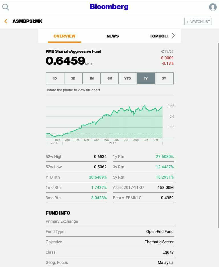 Islamic Unit Trusts Malaysia Excellent Performance Of Pmb Shariah Aggressive Fund Bloomberg 7 November 2017