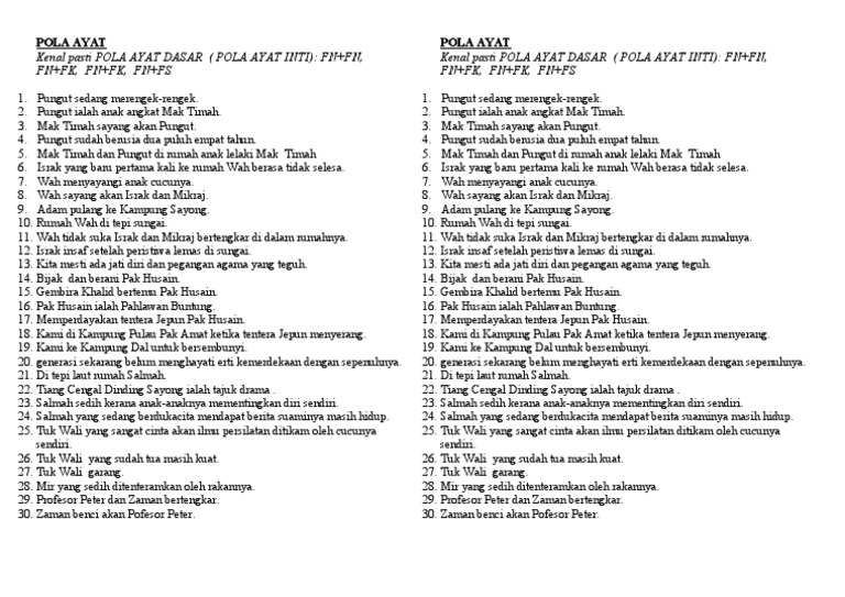Bahasa Malaysia Tahap 1 Bahasa Malaysia Tahun 2 Pola Ayat