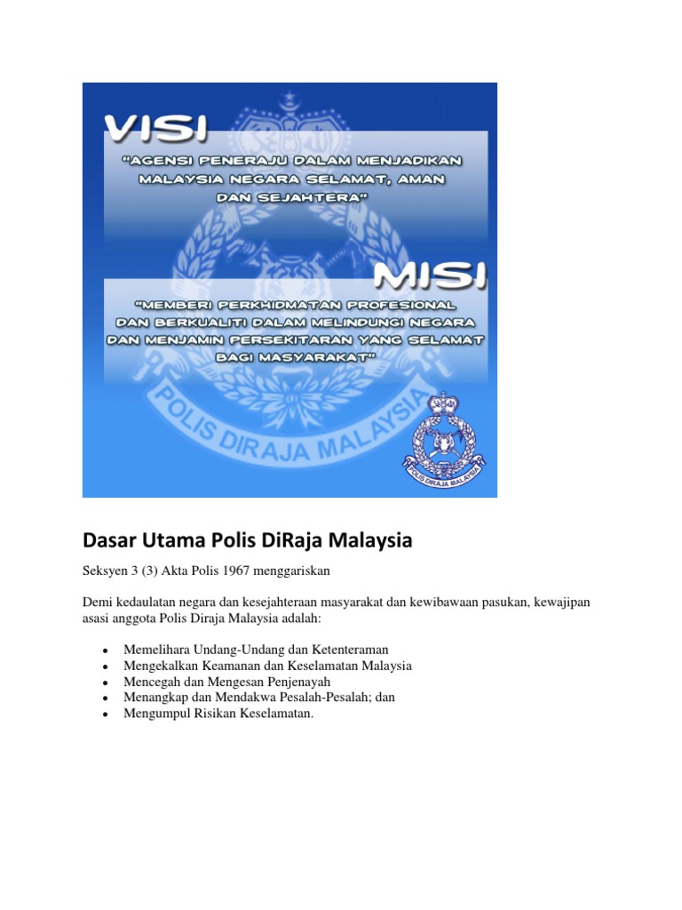 Visi Misi Fungsi Pdrm Pusat Latihan Polis Diraja Malaysia Pulapol Kuching Sarawak Facebook