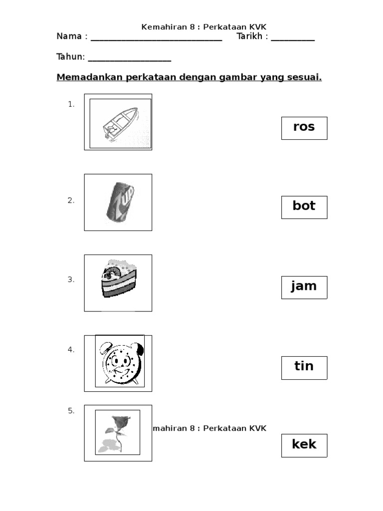 Lembaran Kerja Kemahiran 8 Perkataan Kvk