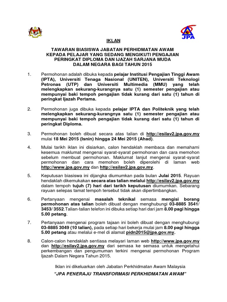 Http Www Pis Edu My Index Php Ms Offcanvas Corporate Category 37 Hep Download 213 Tawaran Penajaan Jabatan Perkhidmatan Awam Jpa Peringkat Ijazah Pertama Di Bawah Program Ijazah Dalam Negara Pidn Tahun 2020