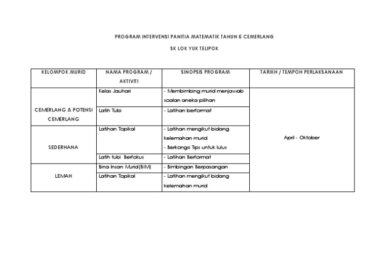 Doc Pelan Intervensi Peperiksaan Pertengahan Tahun 6 2016 Aini Afida Mat Diah Academia Edu