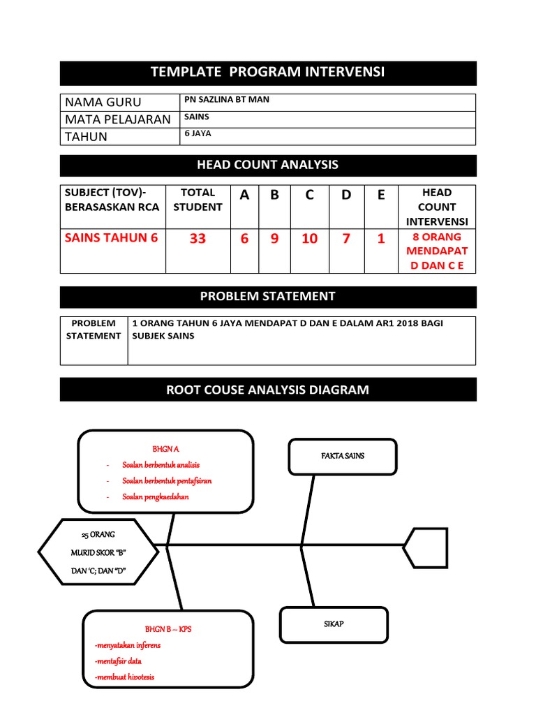 Templete Program Intervensi Sains Tahun 6 Jaya