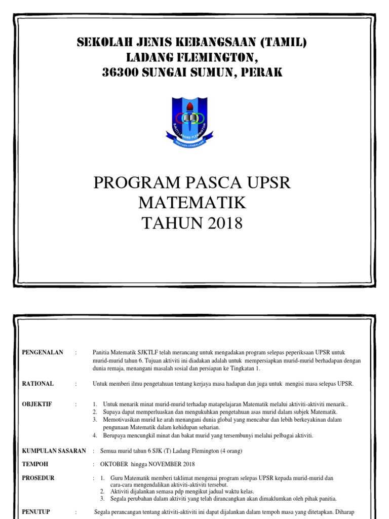 Program Selepas Upsr 2018 1 Docx
