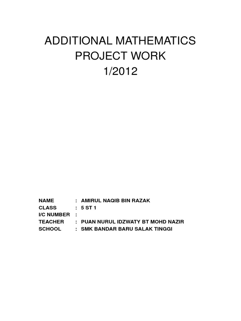 Additional Mathematics Project Work 2013