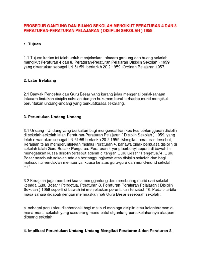 Prosedur Gantung Dan Buang Sekolah Mengikut Peraturan 4 Dan 8 Peraturan