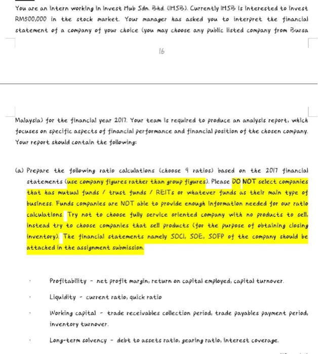 You Are An Intern Working In Invest Hub Sdn Bkd Chegg Com