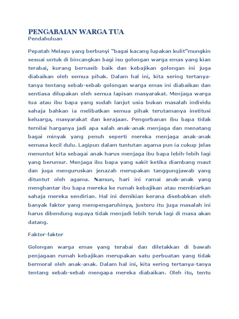 Faktor Faktor Pengabaian Warga Emas